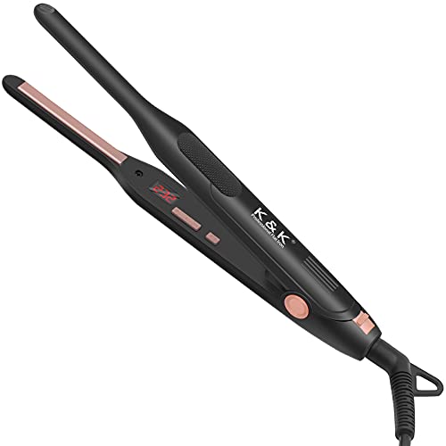 K&K Pencil Straighteners for Short Hair, Upgrade Mini Straight and Curler Hair Straightener Thin Ceramic Floating Plate Auto Shut Off Flat Iron for Women Short Hair Men Beard 0.3 Inch
