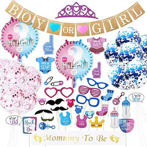120pcs Baby Gender Reveal Party Decoration Supplies with Boy or Girl Gender Reveal Balloon Banner Decoration,Foil Balloons and Confetti Balloons,Cupcake Toppers,Photo Booth Props with Stickers