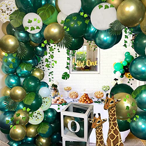 128 PCS Jungle Theme Safari Decorations with Green Balloon Garland Arch Backdrop, Tropical Leaves Decoration, Ivy Vines, Birthday Party Supplies for Boy or Girl (green)