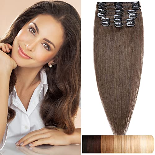 18" SEGO Clip in Hair Extensions Real Human Hair [#4 Medium Brown] Remy 8PCS Full Head Hairpieces for Women Straight (80g)