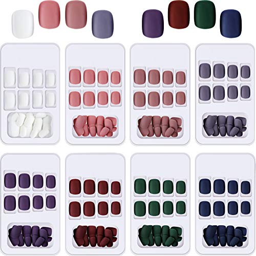 192 Pieces Short Matte Press on Nail Acrylic Short Square Glue on Nails Colorful False Nails Full Cover Coffin Artificial Fake Nail for Women and Girls 8 Boxes (Multicolor)