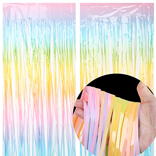 2 Pack, 3.28 x 6.56ft Rainbow Foil Fringe Curtain Multicolor Metallic Tinsel Curtains Party Photo Backdrop Decoration Hanging Streamer Curtain for Party/Prom/Birthday/Wedding/Bridal Shower Favors