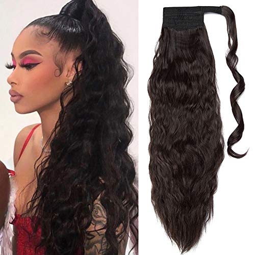20 Inch Wrap Around Ponytail Extension Corn Wave Magic Hairpiece Synthetic Ponytail Hair Extension For Women Ladies [Dark Brown]![]()  - Vendor