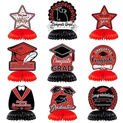2022 Graduation Party Decorations, 9PCS Graduation Honeycomb Centerpiece Red Black Graduation 3D Table Decoration Graduation Cap Table Toppers for Class of 2022 Congrats Graduation Party Decorations