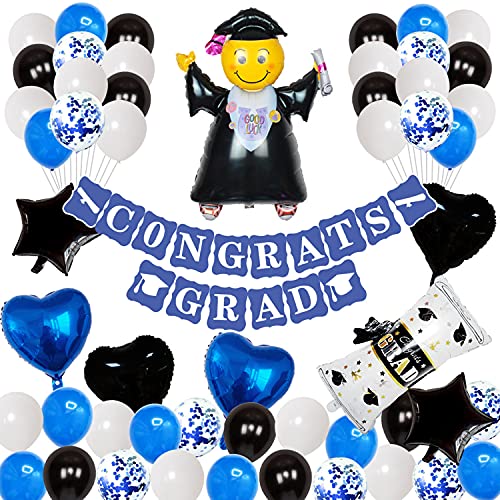 2022 Graduation Blue Balloons Kit, Congrats Grad Banner, 35pcs Latex Ballooons Class of 2022 Balloons, Confetti Balloons, Foil Balloons for 2022Graduation Decorations Backdrop Party Supplies (Blue)