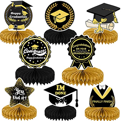 2022 Graduation Party Decorations, 8 Pieces Graduation Party Decorations Congrats Grad Honeycomb Centerpieces Black Gold Congratulate Graduation Table Toppers for Graduation Party Favor Supplies