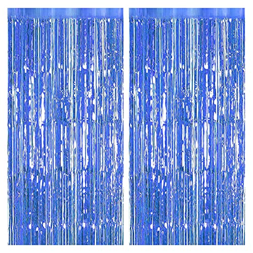2PCS Tinsel Foil Fringe Curtains Blue Metallic Shimmer Curtain Backdrop Foil Streamers Party Decorations Fringe Streamers Tinsel Curtains foil curtain For Christmas Birthday Party Wedding Door