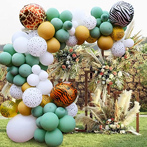100PCS Safari Jungle Balloon Arch Kit, Green Balloons Garland Kit with Large 4D Foil Animal Balloon, Jungle Theme Balloon Arch with Gold White Spot Balloons for Baby Shower Birthday Party Decoration