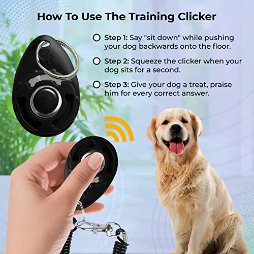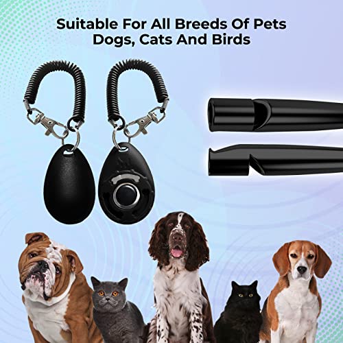 - [Widely Used] This is a fantastic system for teaching your pet amazing communication skills. Our dog training set is appropriate for dogs of any age and breed, and it will help you learn more about each other. The dog clicker for easy clicking and the whistles sound can be used to train not only dogs, but also cats, birds, chickens, sheep, and even mice, please note it’s not an ordinary whistle it’s a silent whistle, humans can’t hear it loudly.