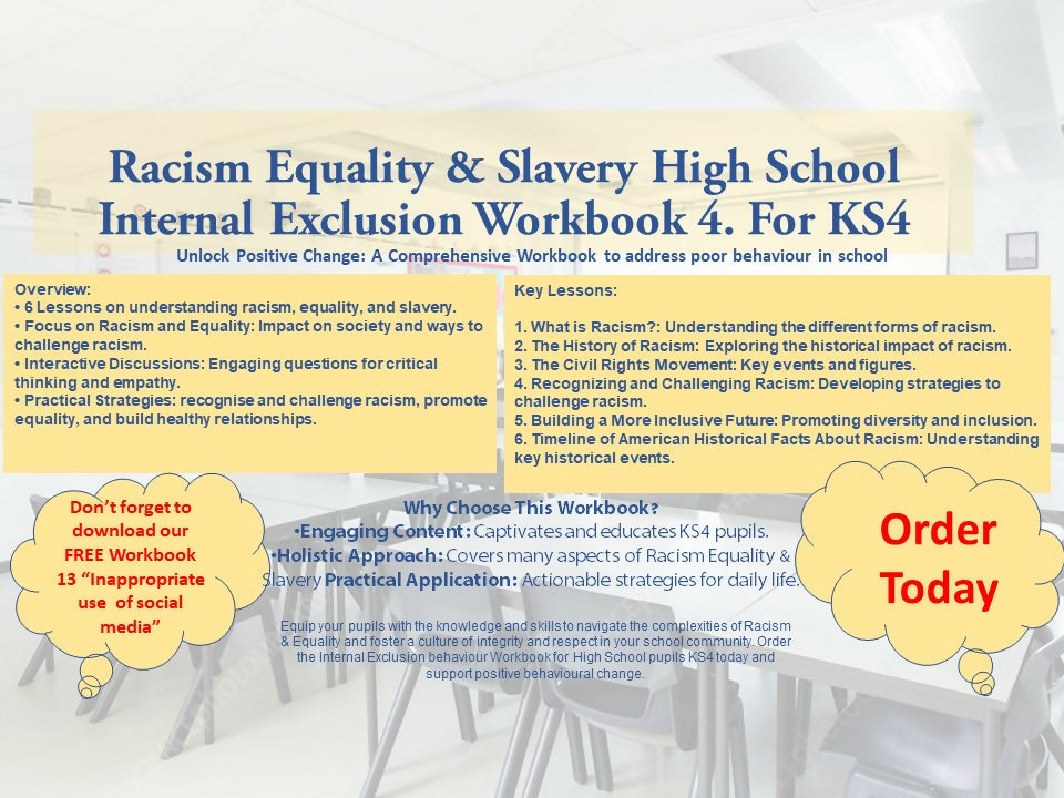 Order the Racism, Equality & Slavery – Internal Exclusion Workbook 4 (KS4) today and support meaningful behavioural change.