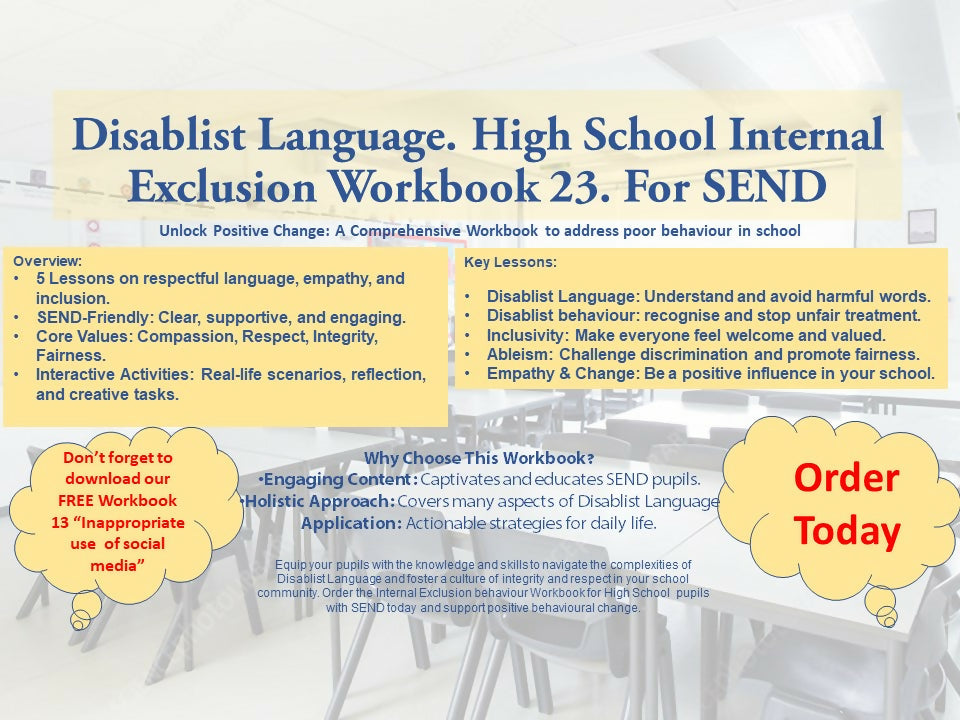 Internal Exclusion Workbook 23: Disablist Language & Behaviour (SEND)(KS3 & KS4)