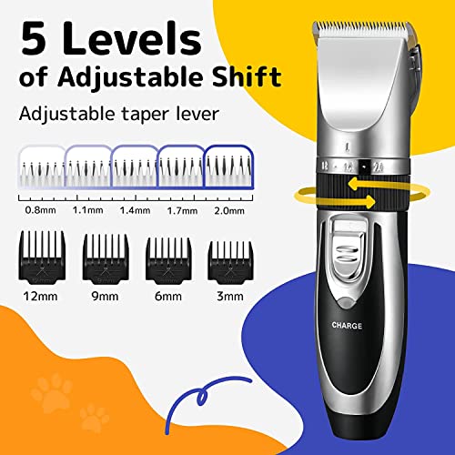 - 【Applicable for All Pets】: Whether you’re a professional groomer or a beginner, the 5-level blade adjustment(0.8-2mm) of this dog grooming tool will enable you to cut with great precision, and the variety of 3-6-9-12mm limit combs also allow you to trim different pets more handily and effortlessly.