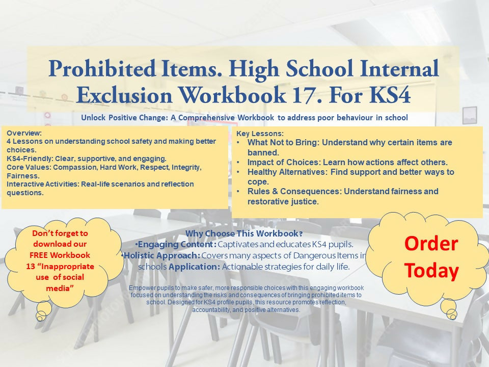 Order the Prohibited Items – Internal Exclusion Workbook 17 (KS4) today and support meaningful behavioural change.