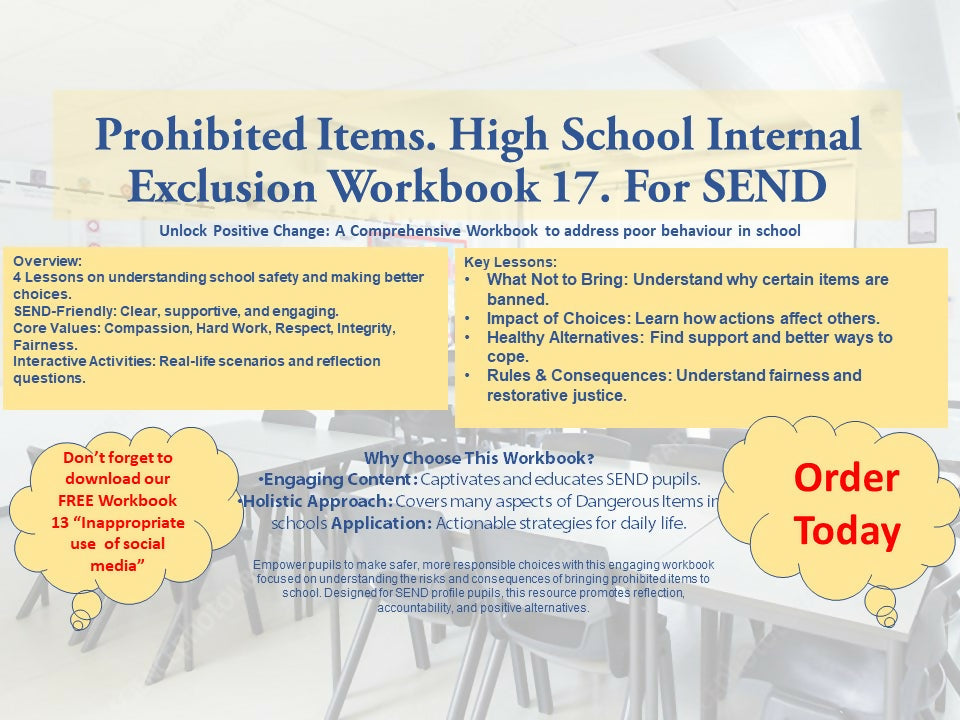Internal Exclusion Workbook 17: Prohibited Items in School (SEND) (KS3 & KS4)