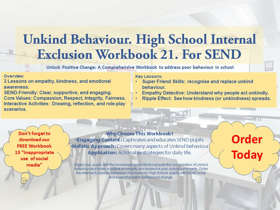 Internal Exclusion Workbook 21: Unkind Behaviour Towards Others(SEND) (KS3 & KS4)
