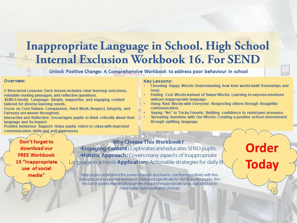 Internal Exclusion Workbook 16: Inappropriate Language in School (SEND) (KS3 & KS4)