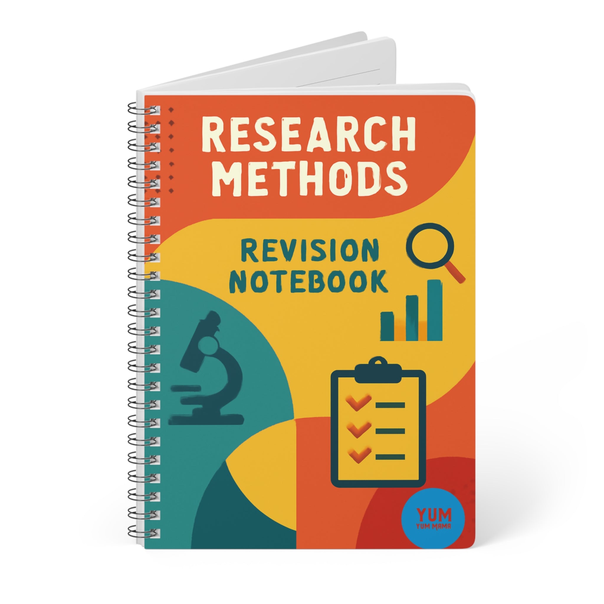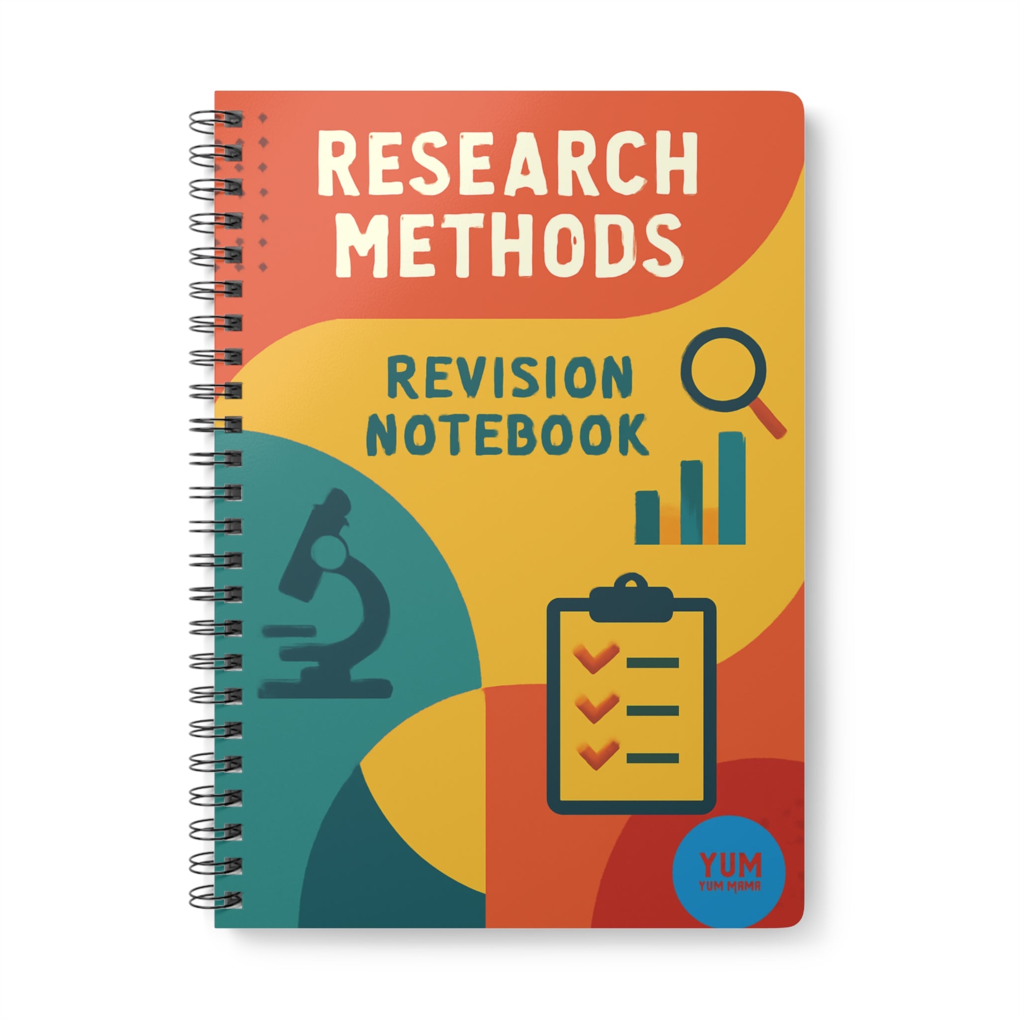 This vibrant A5 Research Methods Revision Notebook helps students keep all their notes — experiments, variables, sampling, ethics, statistics, reliability, validity, data analysis and more — structured, clear and all in one place. No more loose sheets or muddled pages. Just focused, topic-specific revision that improves understanding and boosts exam performance.