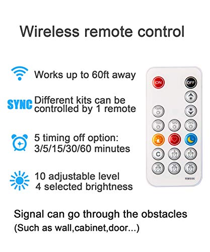 - RF Wireless remote control: 17-Key RF remote has timing off, dimming, hot buttons, rematch and dynamic function, 60 feet control distance